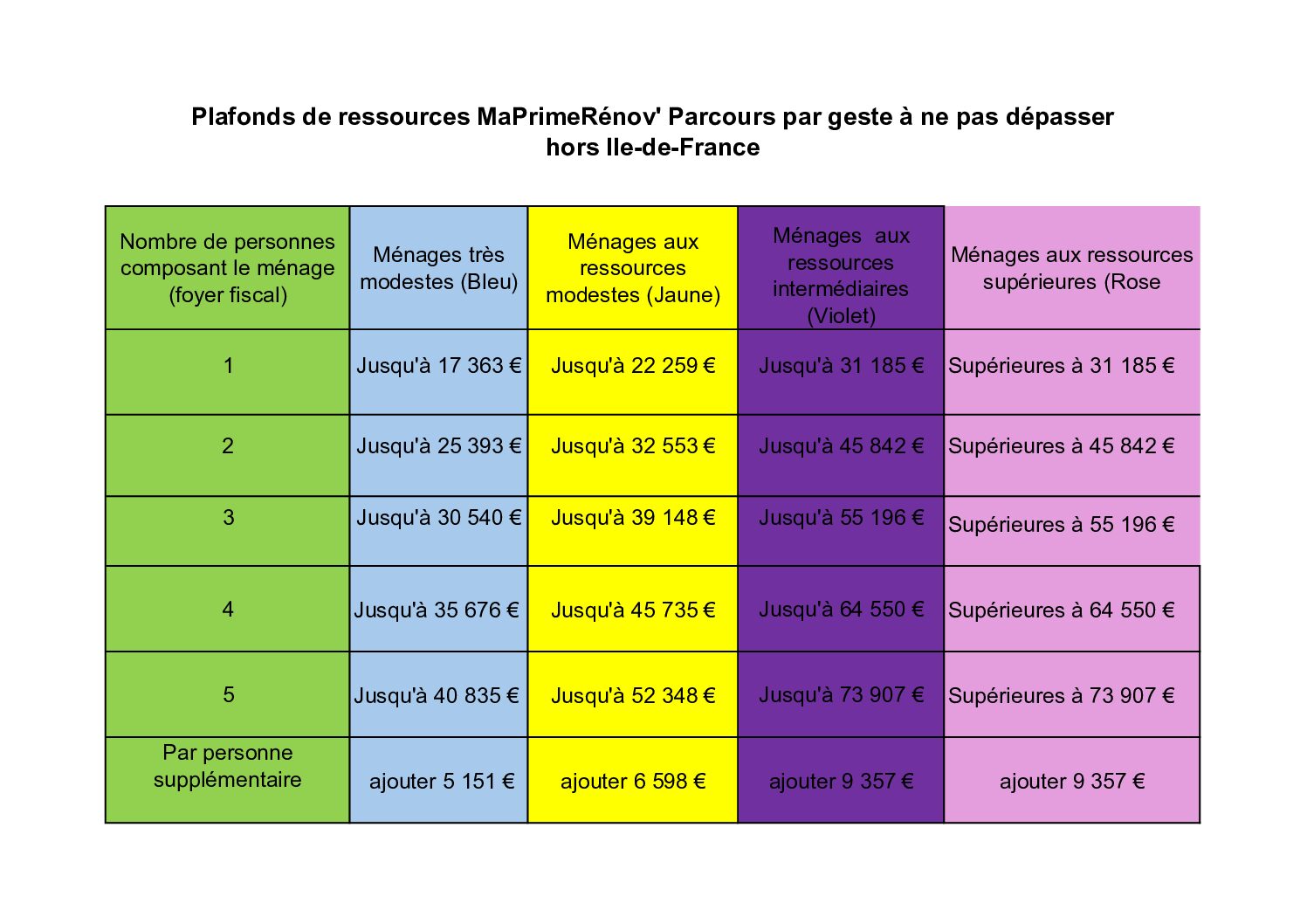 Comme chaque année, l’Anah révise les plafonds de ressources qui définissent la catégorie du ménage : bleu (trés modeste), jaune (modeste), violet (intermédiaire) et rose (aisé).